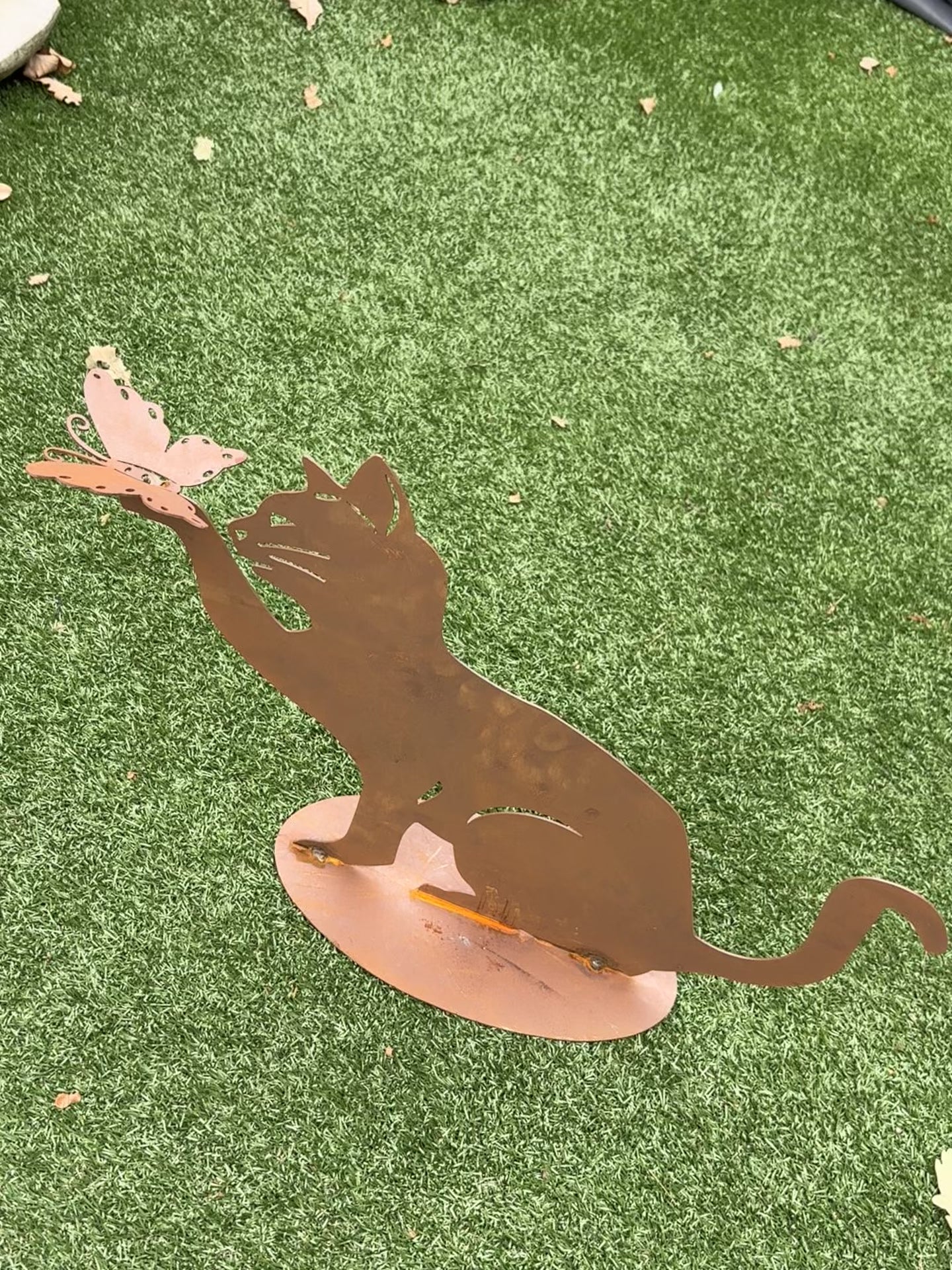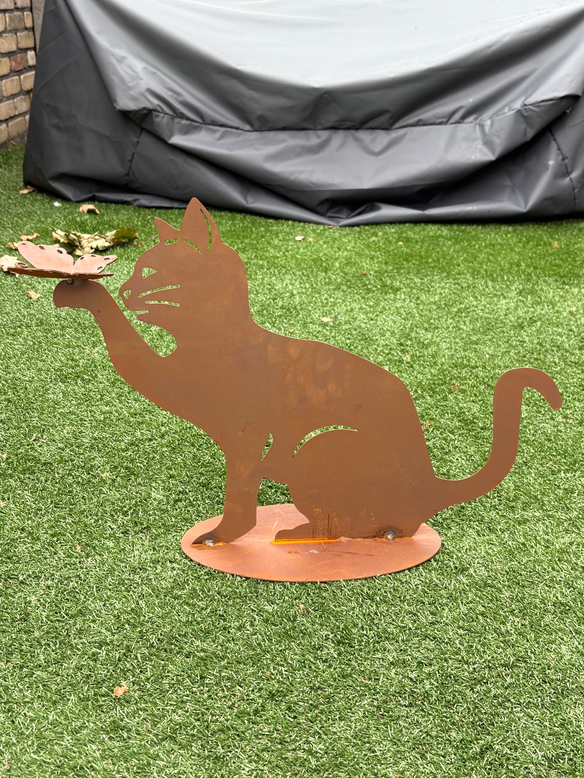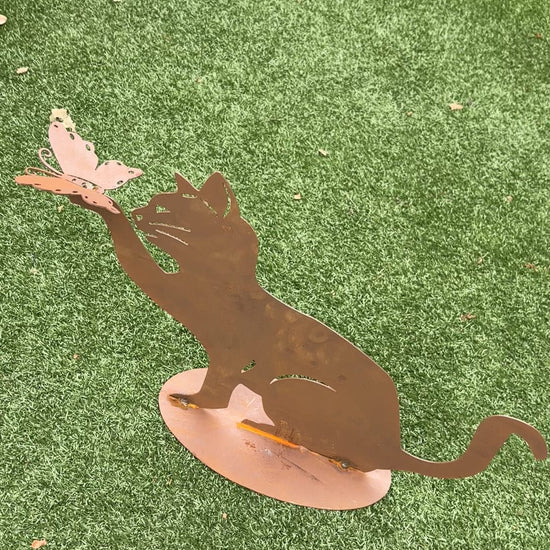 Kat vangt vlinder , Hoogte 42cm , breedte 60cm op plaat