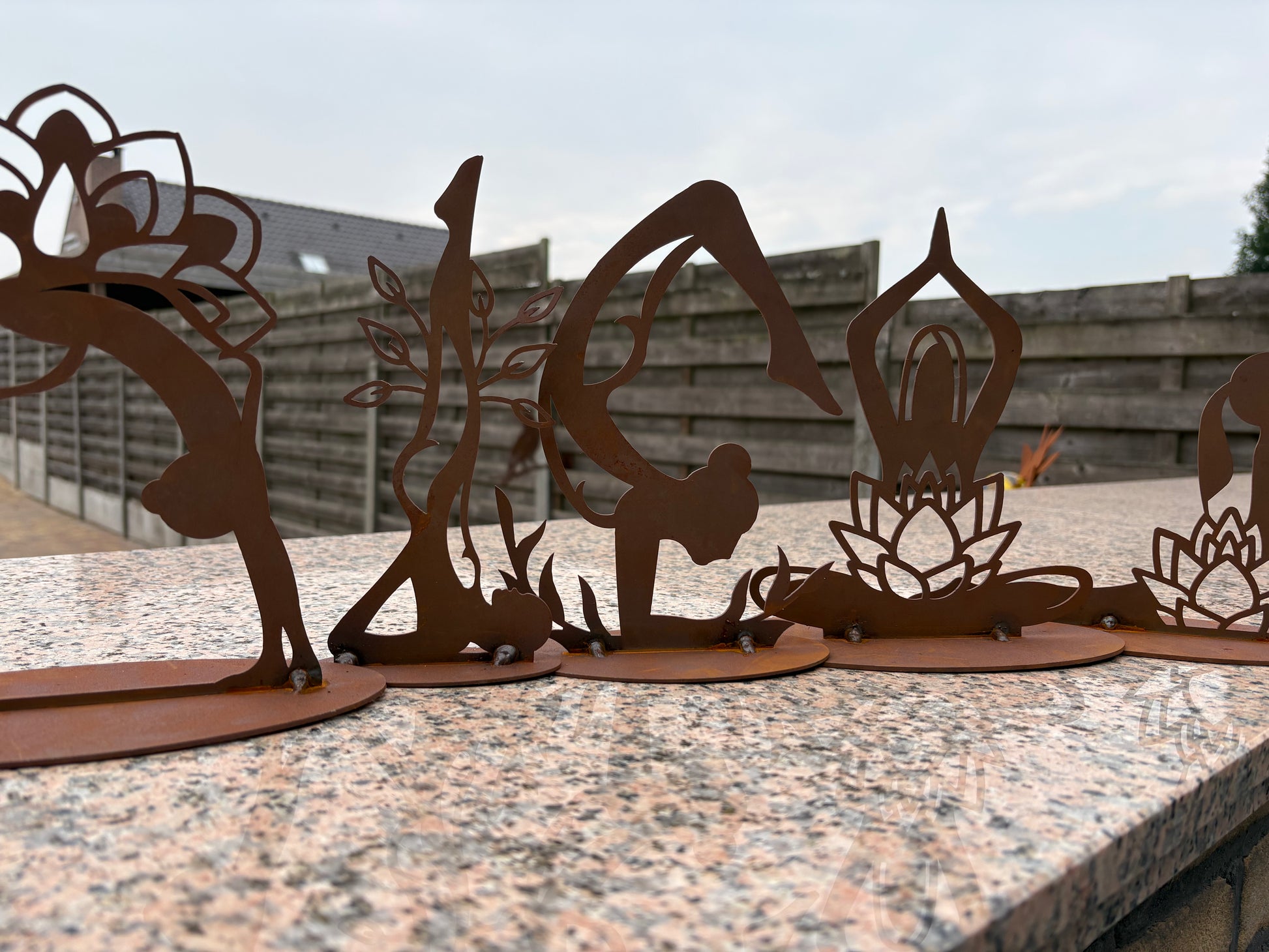 Yoga beeldjes op plaat , verschillende vormen. Hoogte 20cm op voet