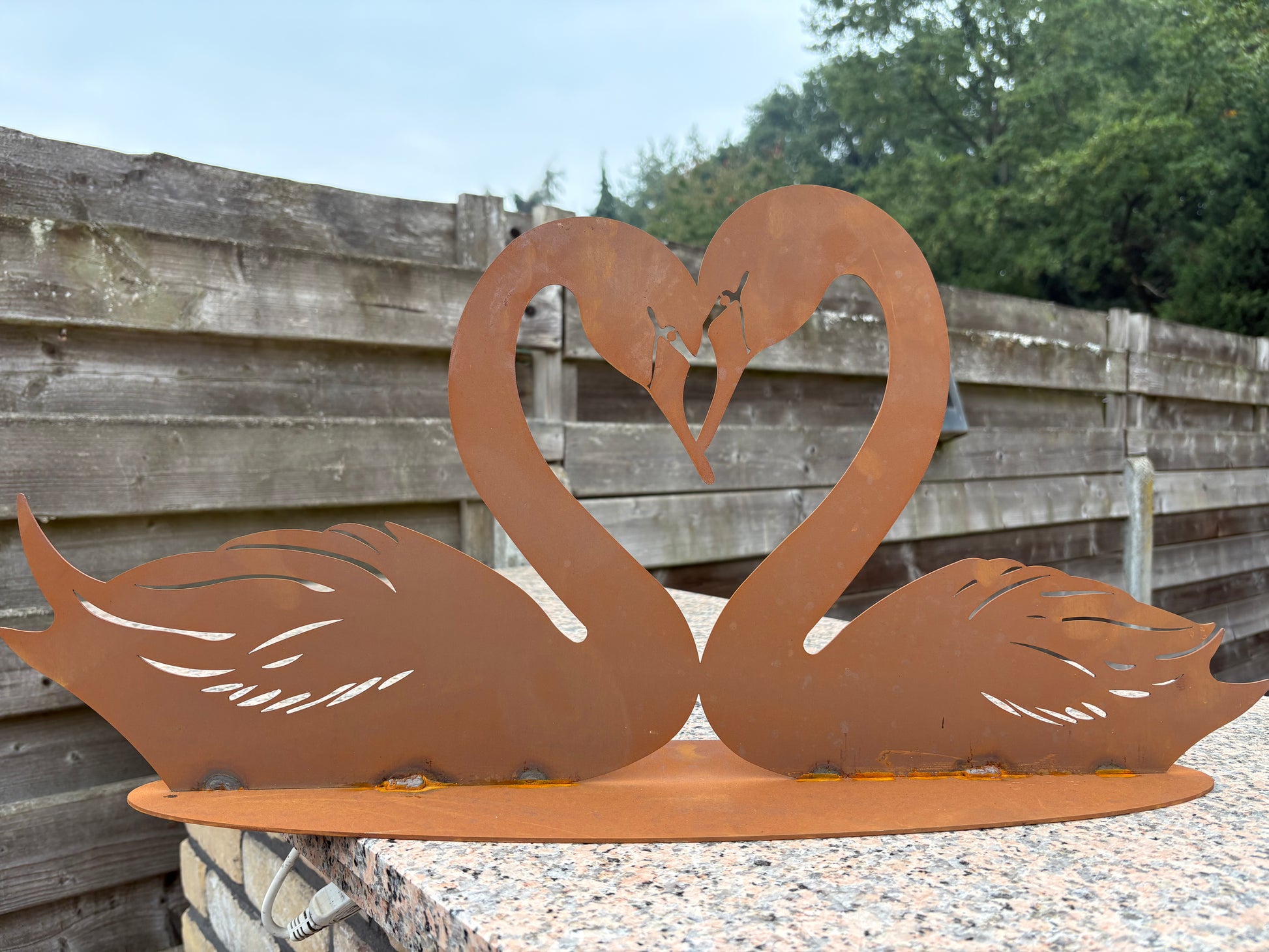 Zwanenpaar op voet ; hoogte 30cm ; breedte 64cm